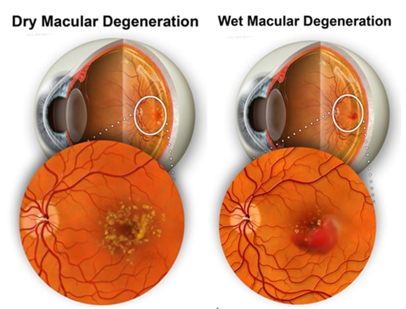 โรคจอประสาทตาเสื่อม เป็นอีกหนึ่งโรคที่พบได้บ่อยในผู้สูงอายุ เป็นภาวะที่จุดรับภาพที่อยู่ตรงส่วนกลางของจอตาเกิดการเสื่อมขึ้น ทำให้การมองเห็นส่วนกลางของภาพมัวลง แต่บริเวณรอบข้างยังสามารถมองเห็นได้เป็นปกติ อาจเกิดจากการเสื่อมไปตามช่วงอายุที่มากขึ้น แสงยูวี การสูบบุหรี่ หรือมีระดับความดันโลหิตสูง