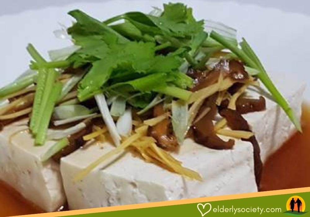 3. ราดน้ำซอสที่ผสมไว้บนเต้าหู้ โรยด้วยขิง ขึ้นฉ่าย และพริกชี้ฟ้า นำไปนึ่งต่อ 1-2 นาที แล้วยกใส่จานเสิร์ฟ