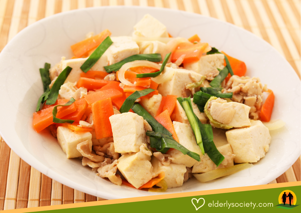 เต้าหู้ วัตถุดิบสำคัญในการนำมาปรุงอาหารที่หลาย ๆ คนรู้จักและคุ้นเคย มีคุณประโยชน์ที่สำคัญและดีต่อสุขภาพหลายด้าน ซึ่งที่สำคัญคือ เต้าหู้เป็นแหล่งโปรตีนชั้นดีที่ได้จากถั่วเหลือง สามารถเทียบเท่าเนื้อสัตว์ได้ หรือเรียกได้ว่าค่อยข้างเหมาะกับผู้สูงวัยมากกว่าเนื้อสัตว์ครับ เพราะถ้าผู้สูงอายุทานเนื้อสัตว์ จะเคี้ยวยาก ย่อยยาก ทำให้ท้องอืด เอลเดอร์จึงอยากแนะนำให้ทานโปรตีนจากเต้าหู้แทน หรืออาจจะทานสลับกับเนื้อสัตว์ที่ไม่ติดมัน เพื่อให้ร่างกายได้รับโปรตีนจากหลายแหล่งครับ