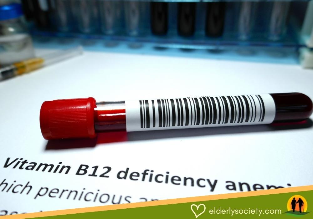 ในภาวะปกติร่างกายต้องการวิตามินบี12 ประมาณวันละ 1 ไมโครกรัมในผู้ใหญ่ การขาดวิตามินบี12 จึงเกิดได้ทั้งจากการรับประทานน้อยหรือการใช้ยาบางชนิด แต่สำหรับภาวะโลหิตจางจากการขาดวิตามินบี12 มักเกิดจากการดูดซึมสารอาหารที่น้อยลงตามวัยของผู้สูงอายุ ซึ่งอาการที่พบจะมีเป็นลักษณะเฉพาะคือมีอาการทางระบบประสาทร่วมด้วย เช่น ระบบประสาทของไขสันหลังผิดปกติ เป็นต้น ในการรักษาแพทย์จะให้วิตามินบี12 ทดแทน ขนาด 1,000 ไมโครกรัม โดยฉีดเขาหลอดเลือดเพื่อเพิ่มวิตามินบี12 อย่างรวดเร็ว โดยระยะเวลาการรักษาด้วยการฉีดวิตามินบี12 นั้นใช้เวลาหลายเดือนและต้องพบแพทย์อย่างต่อเนื่องเพื่อใหวิตามินบี12 สะสมในร่างกายและเพื่อให้ชะลอการเกิดภาวะโลหิตจางที่มักจะกลับมาเป็นซ้ำ